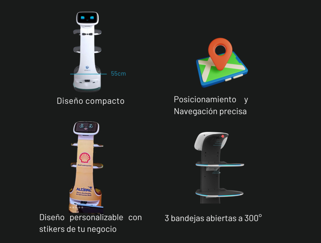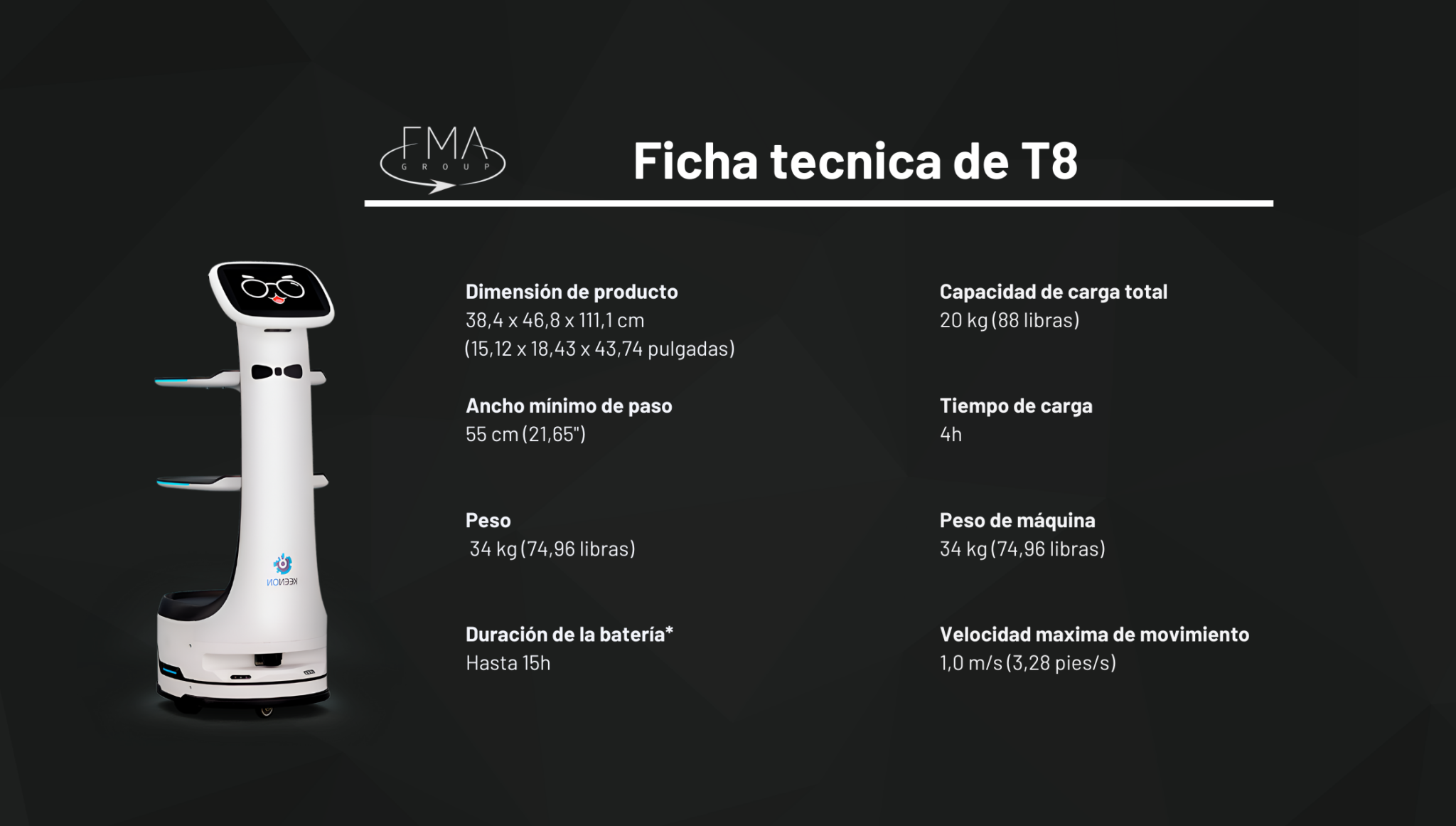 ¡Hola! Soy T8, el robot de transporte diseñado para revolucionar tus procesos industriales. Con capacidad para cargar hasta 20 kg en mis 3 bandejas y navegación autónoma, aseguro un flujo logístico eficiente y seguro. ¿Necesitas adaptarte rápidamente a cambios? Mi flexibilidad en diseño y capacidades te respalda. Ideal para restaurantes, hoteles y eventos que buscan maximizar la eficiencia de relcolección y entrega de productos.