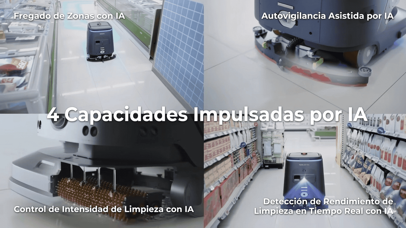 Combina inteligencia artificial, navegación autónoma y análisis de datos para limpiar grandes superficies de forma eficiente y sin intervención humana.