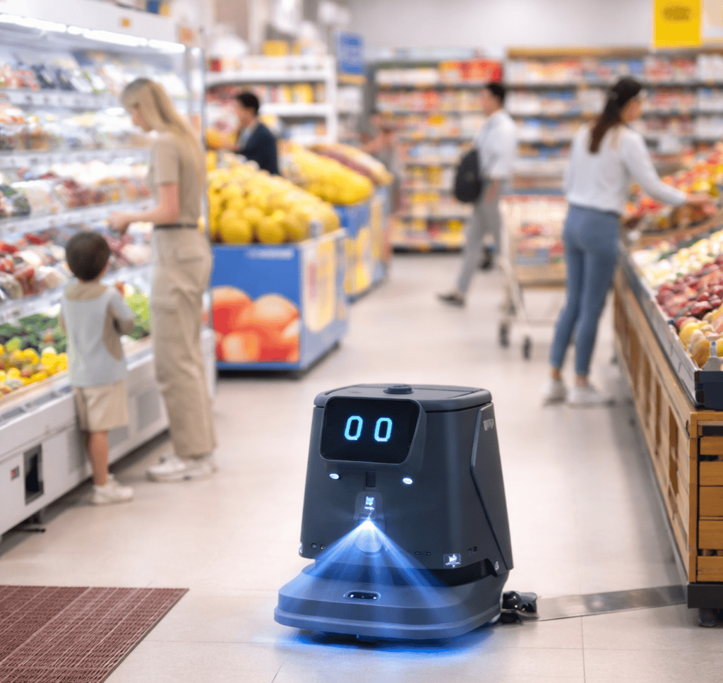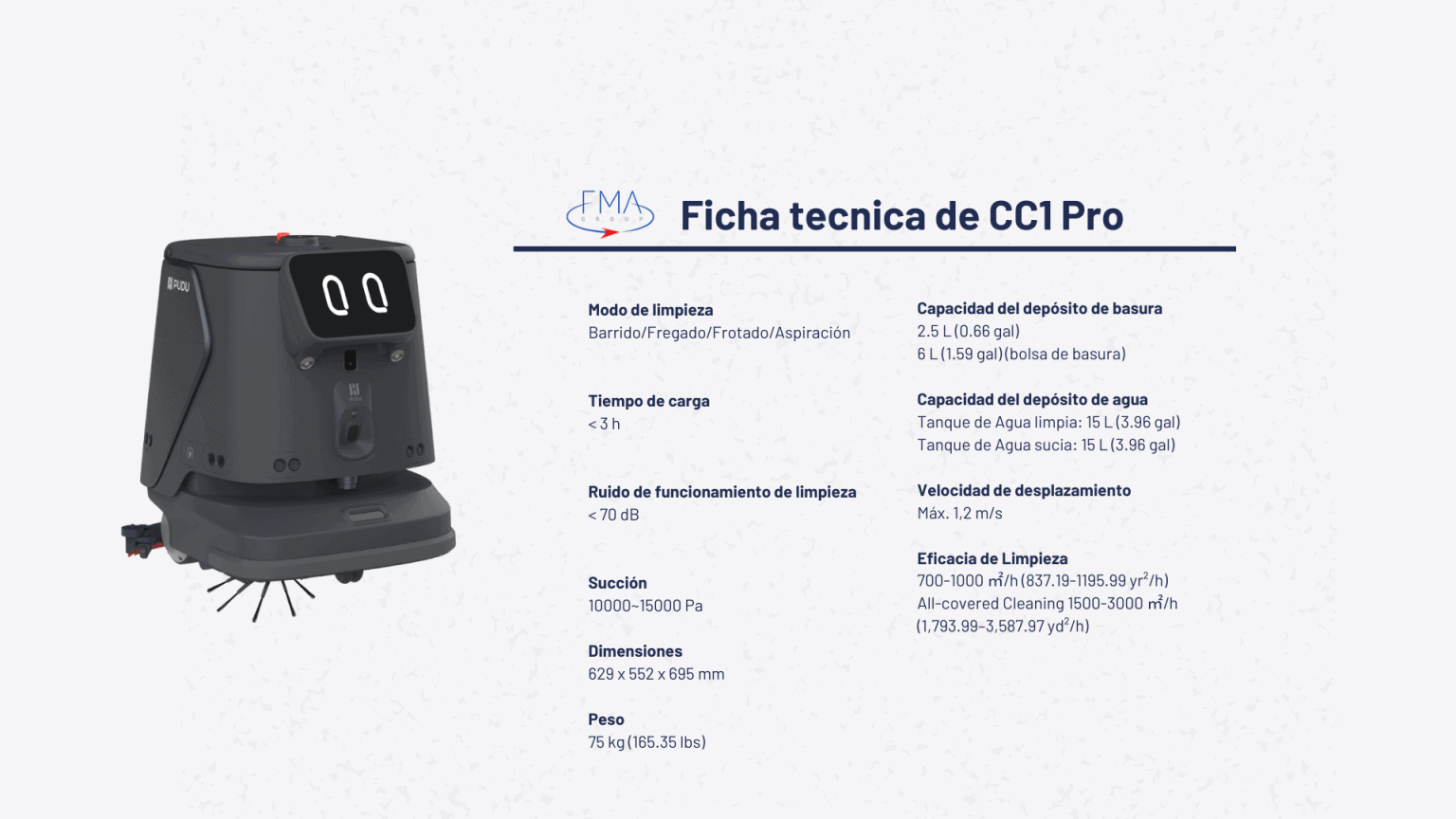 Utiliza visión artificial, inteligencia artificial y navegación avanzada para detectar suciedad, evitar obstáculos y limpiar de forma eficiente en entornos con alto tráfico de personas.