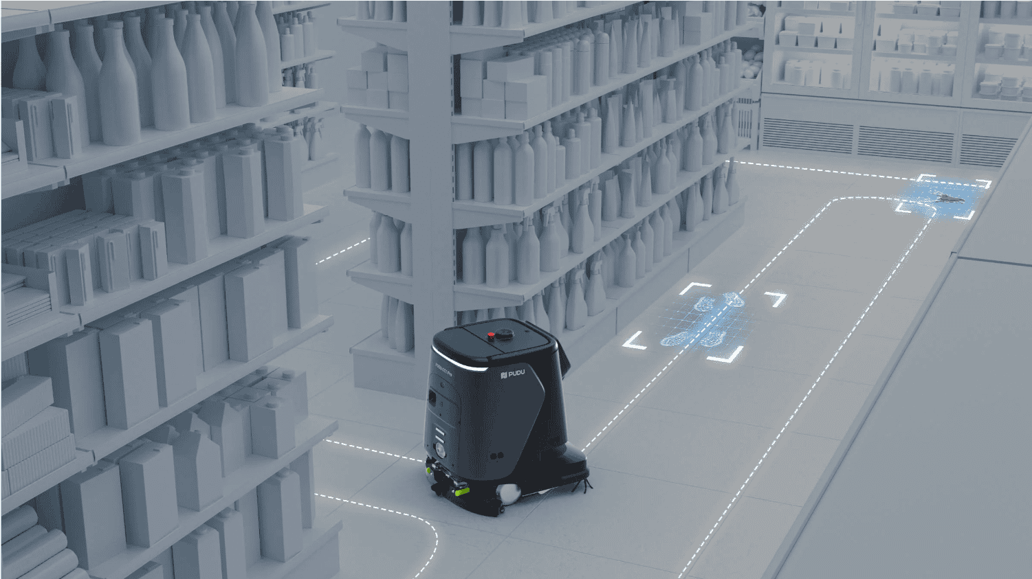 El PUDU CC1 Pro es un robot autónomo diseñado para automatizar la limpieza de espacios comerciales de gran tamaño.